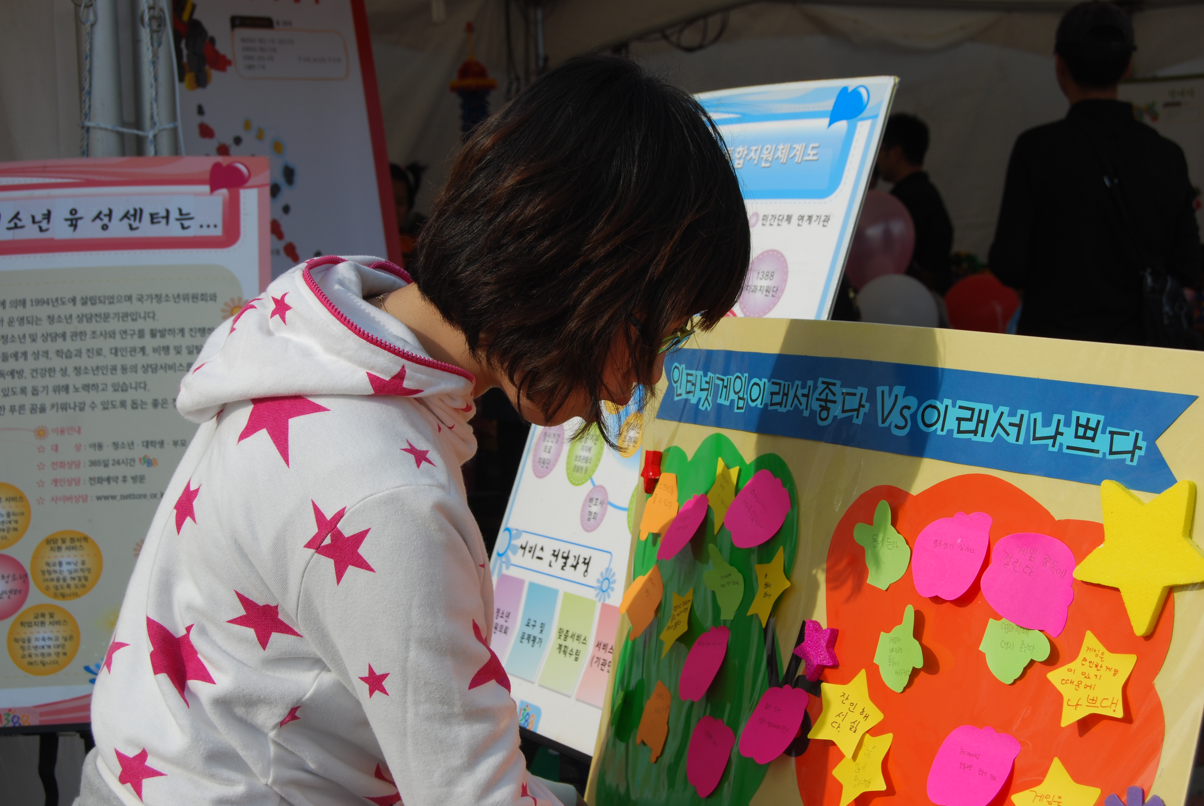 2011년 천안삼거리 아웃리치 활동 3087 | 최고관리자 | 2011-10-04 장소: 천안삼거리일시: 2011.09. 29 - 10.01활동내용: 흥타령축제 부스 주변 홍보활동, 심리검사 및 상담