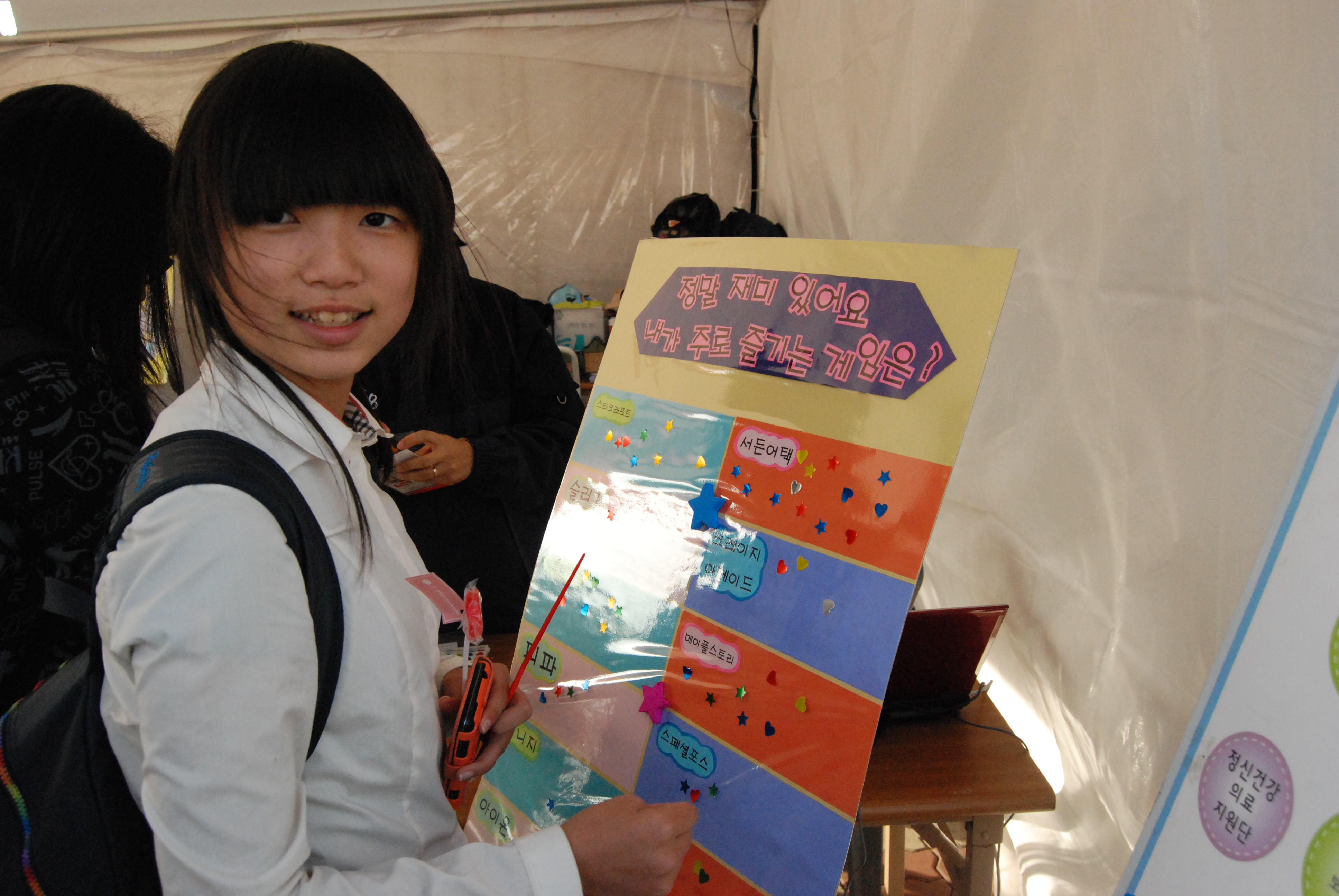 2011년 천안삼거리 아웃리치 활동 3566 | 최고관리자 | 2011-10-04 장소: 천안삼거리일시: 2011.09. 29 - 10.01활동내용: 흥타령축제 부스 주변 홍보활동, 심리검사 및 상담